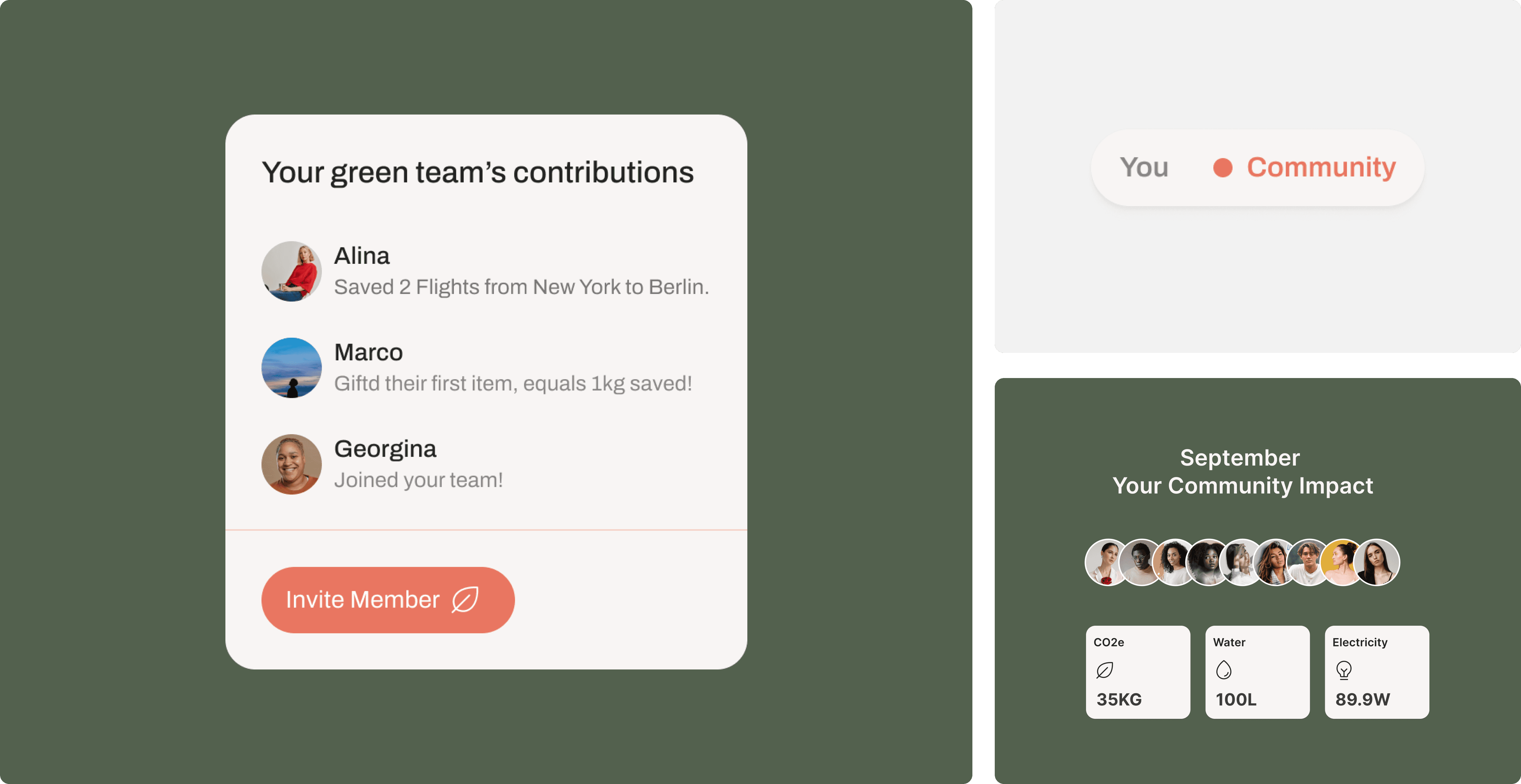 Giftd users lack a clearer way to understand their impact, like CO2e savings from giveaways, and the product’s mission required better communication. We turned this challenge into an opportunity to engage users more deeply and grow the community around sustainability.