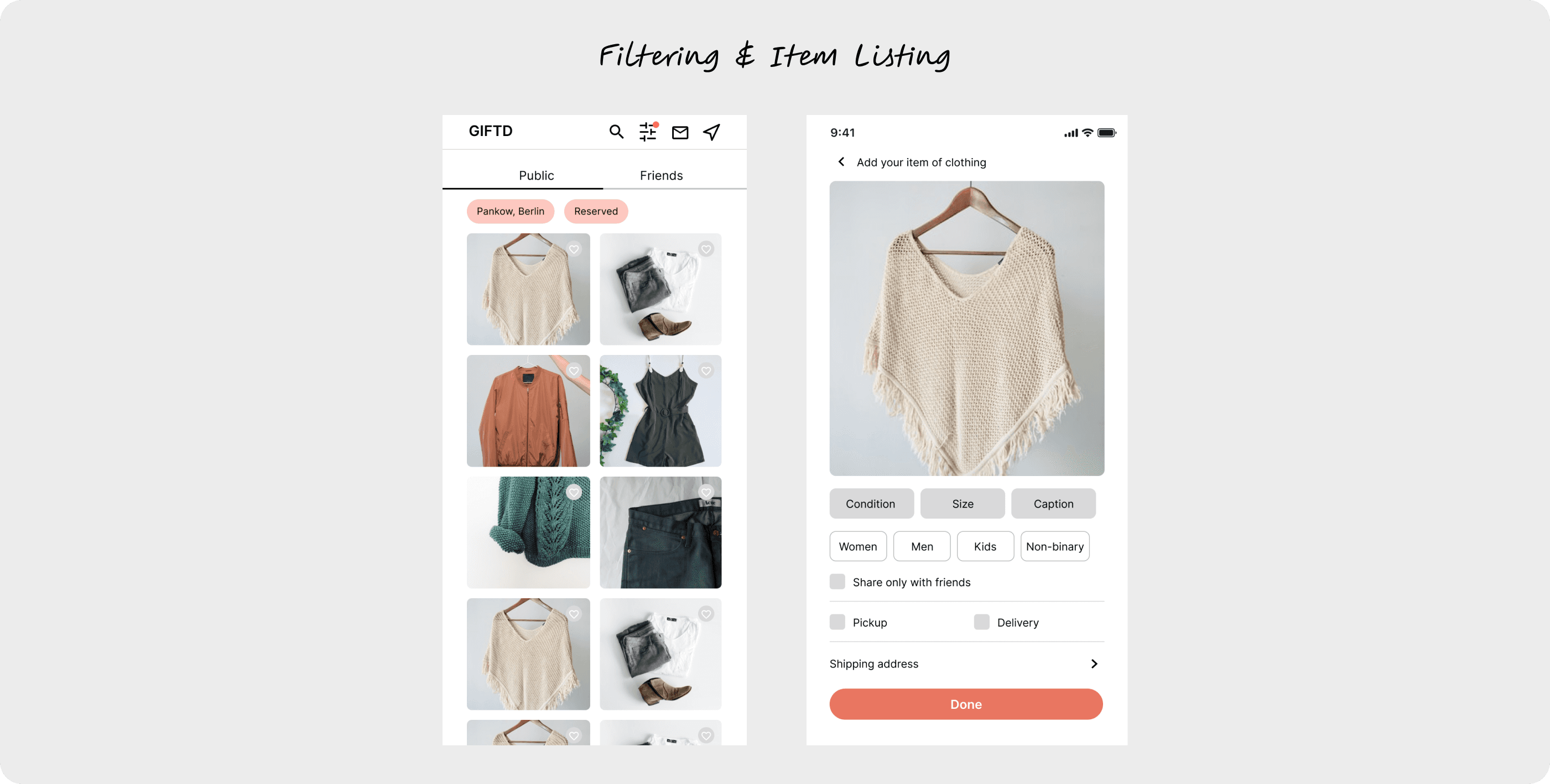 While improving the onboarding flow and implementing filters, we recognized a new opportunity for Giftd: expanding beyond in-person exchanges. Up until now, users had to meet face-to-face to complete their transactions, limiting Giftd’s reach to Berlin. Introducing a delivery option would allow us to scale beyond our local market, giving users more flexibility in how they exchange items.
